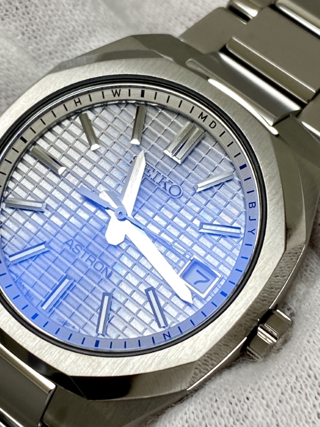 そんな輝きが、ダイヤルの幾分輝きを抑え気味のシルバーの、ザラッとした質感と好対照を作り出して相乗し、まぁ、見事な美しさ。