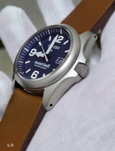 ケースの横径は小ぶりな36.6mmながら、バンド幅:カン幅が19mmとしっかり取られているため、小さく見えないのもポイント。