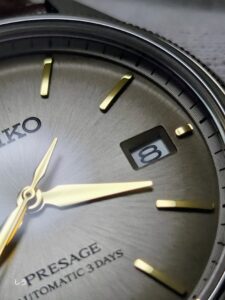約72時間ということですから、土日の間、当SARH001を着用しないでも、止まった時間を調整することなく、月曜日からさっと使える。このように機械式時計の最大巻き上げ時継続時間が長いことは、大変、便利であるというわけです。