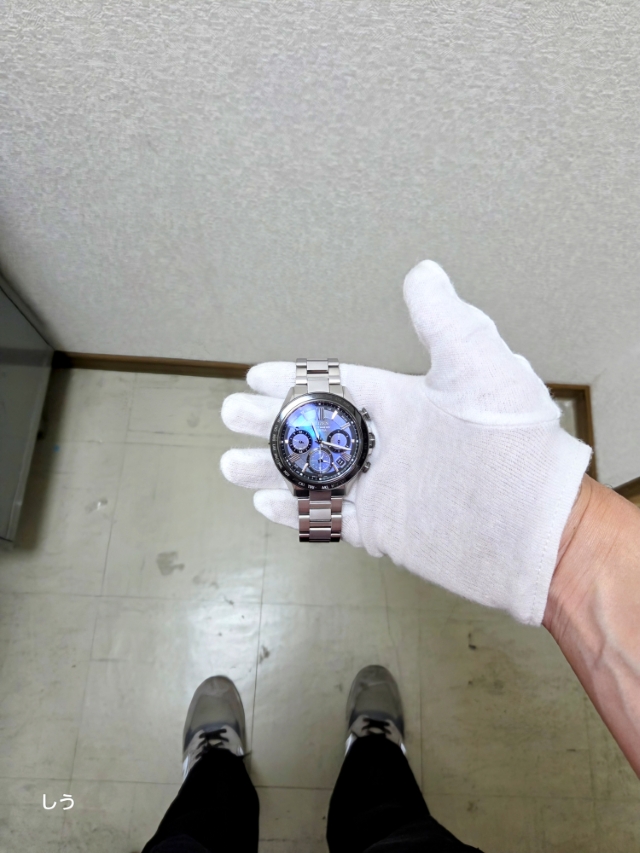 ソーラーGPSのアテッサではなく、似たような雰囲気の、ソーラー電波の構造色インク、2023年初代限定をご覧いただこう。