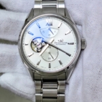 とまれ、ワントーンでこのシンプルなカラーリングで、これほどまでに美しいダイヤル。オープンハートのムーブメント。