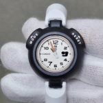 外装に目を戻すと、ストラップは、サウナのロッカーキーから着想されたカールバンドのため