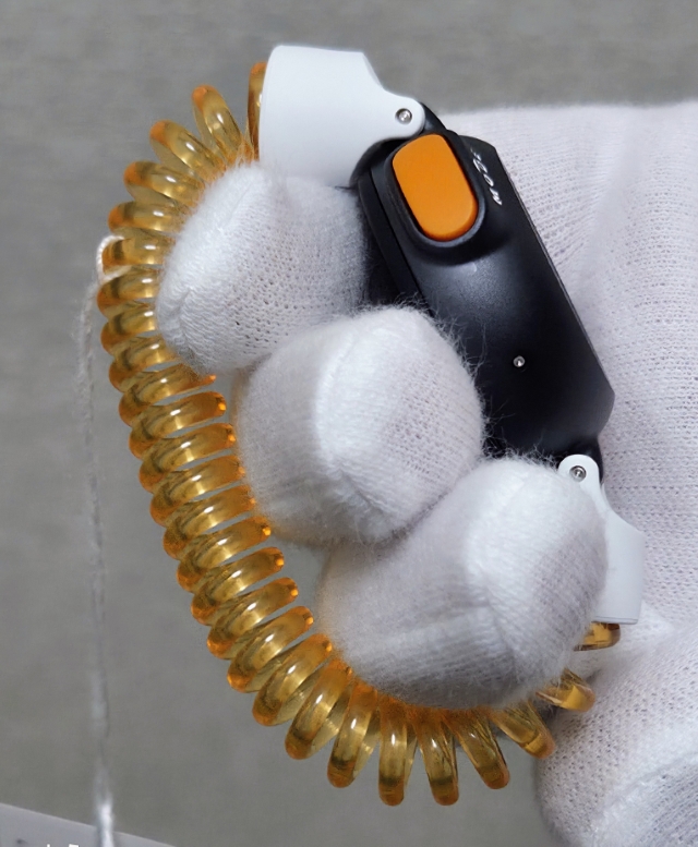 伸び縮みするので装着感の軽減や、手首ではなく足首などにも装着できそう。