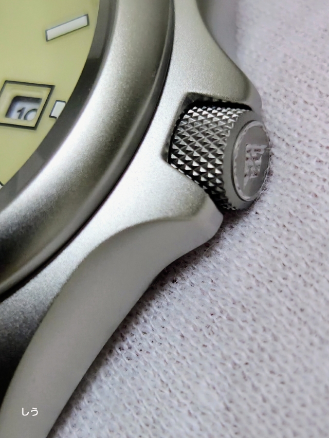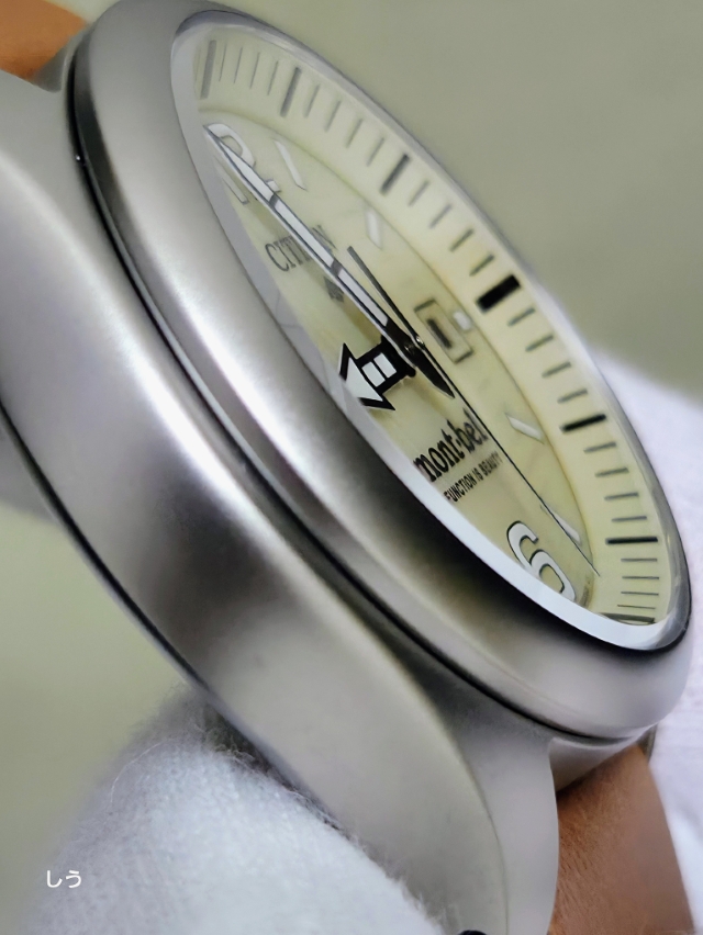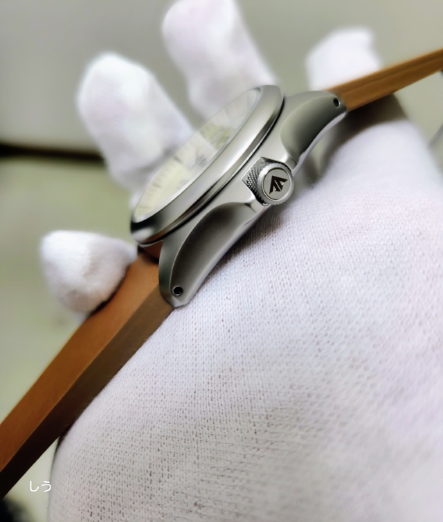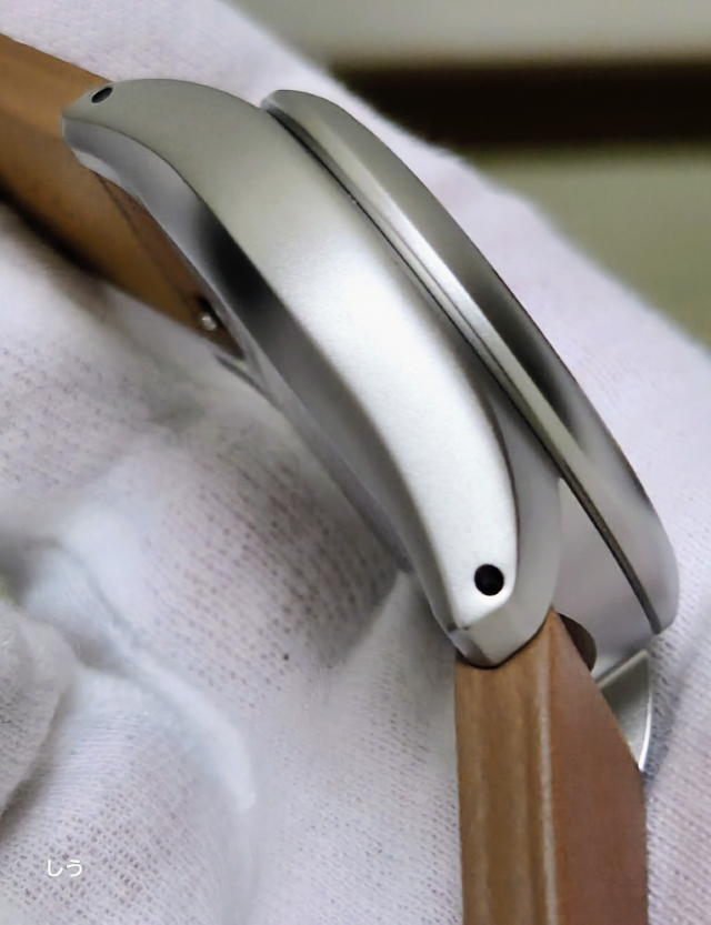 サイドからの造形もスッキリとして美しくシンプル、だけではなく、手首上で裏蓋の出っ張りが気にならず