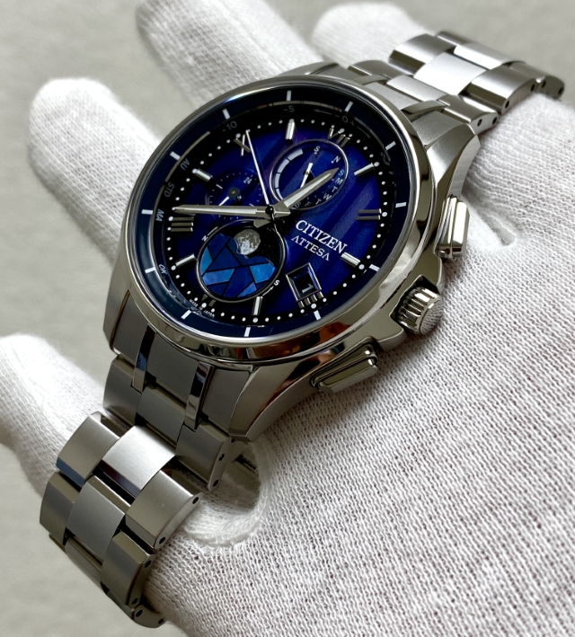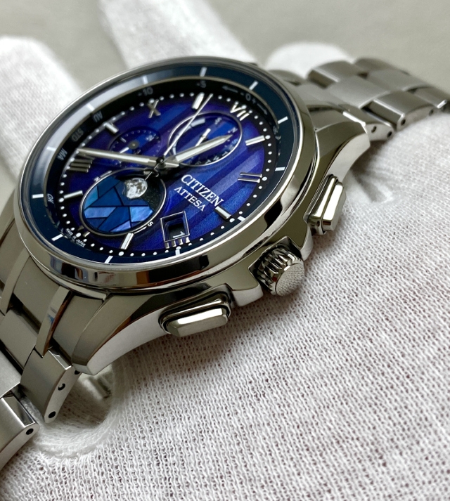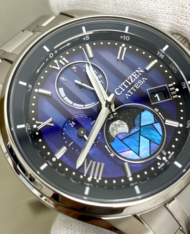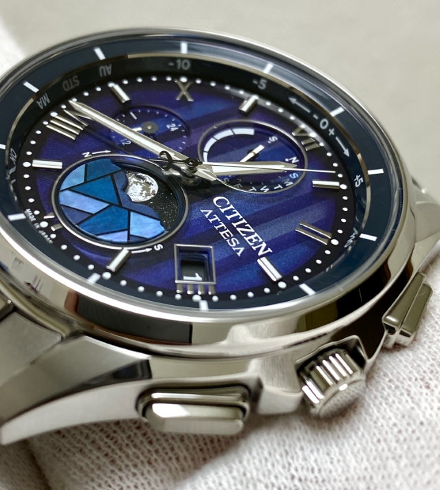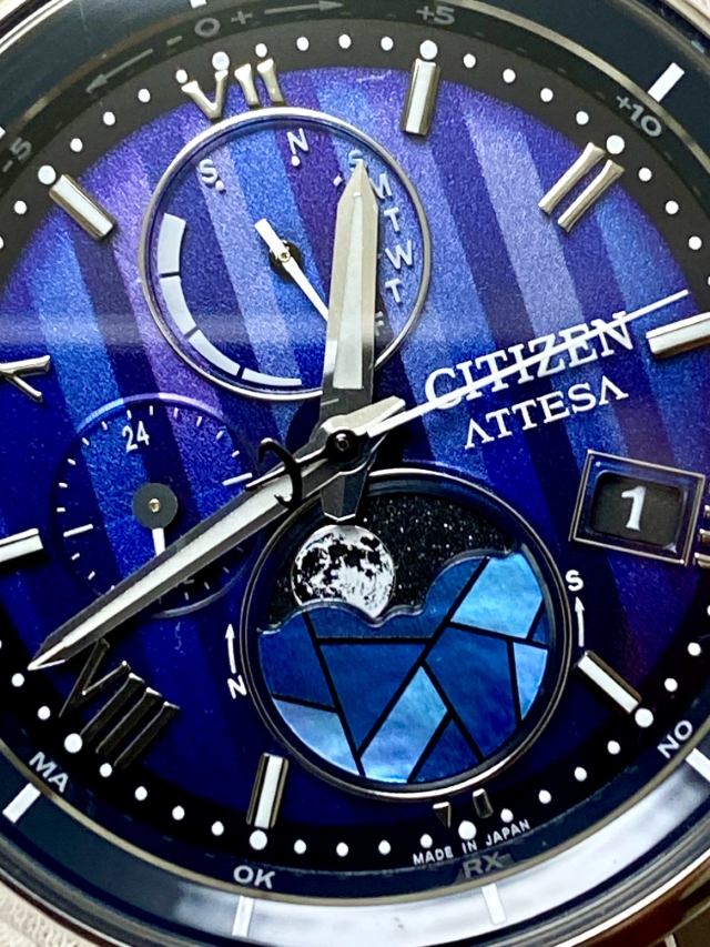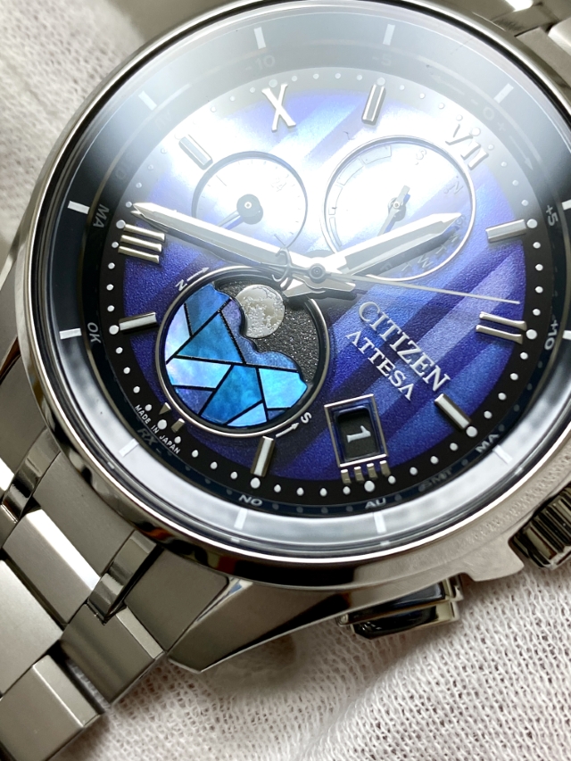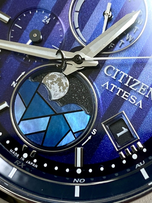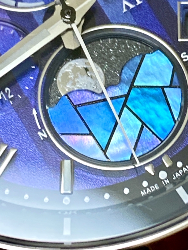 6時位置に配置されたムーンフェイズ・ダイヤルには、ステンドグラスから差し込む月光のイメージがデザインされている。