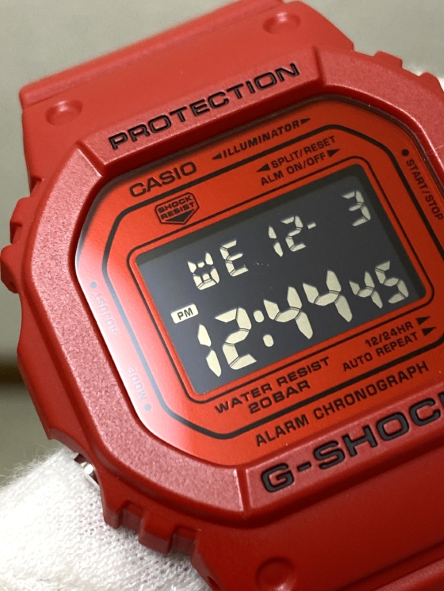いや、もちろん、赤とブラックのコントラストが楽しい当DW-5600RRB-4JFに一目惚れする人も多いのに違いない。