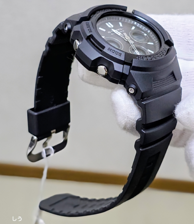 当AWG-M100FP-1A1JRはかなり真っ黒ではありますが、今、こうして何も考えずにキーボードを叩いているオフィスから