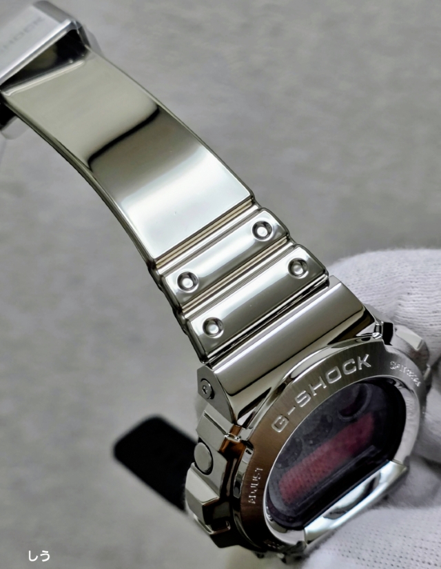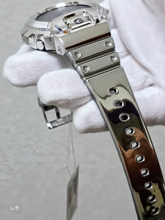 ミラーの蒸着処理がされたシルバーストラップはまるでメタルのよう。このストラップは実は