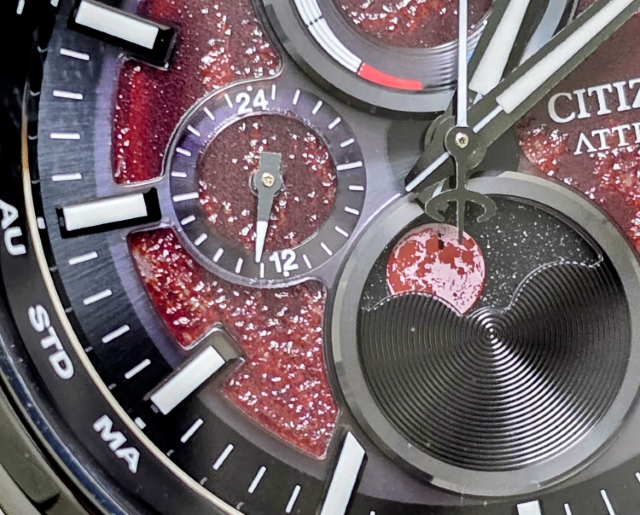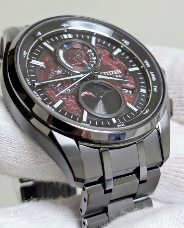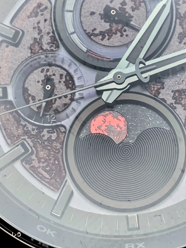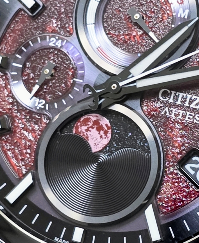 さらに、6時位置に搭載したムーンフェイズの表示される赤き月。