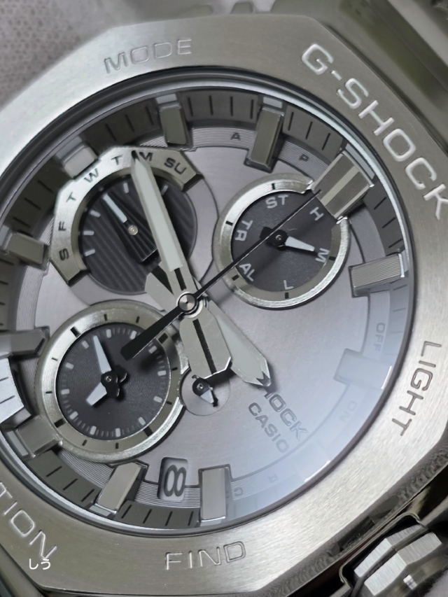 はダイヤルも含めてシルバーカラーの鮮やかさを、3つのスモールダイヤルのダークグレーがぎゅっと引き締め