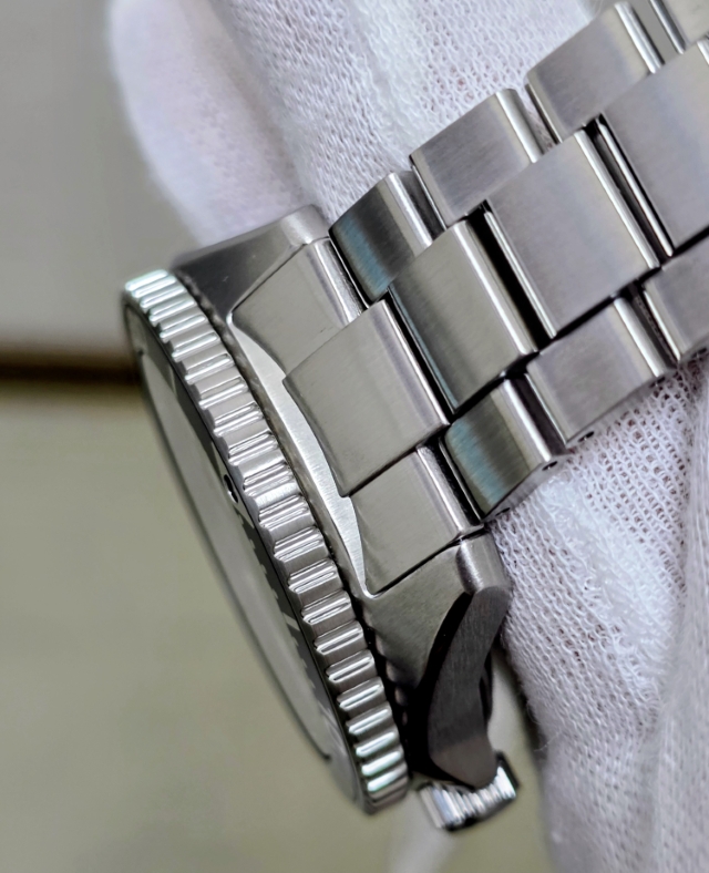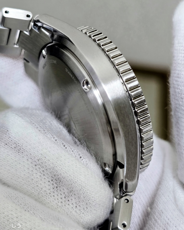 ベゼル周りの指掛かり、ローレット加工の精密さ。