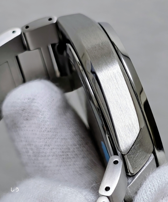 ベゼル・サイドの鏡面仕上げが